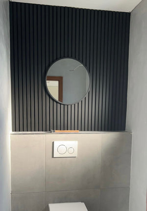 Egy régi, megunt falat pillanatok alatt újra tud varázsolni az akusztikus falpanellel – bontás és hosszas felújítás nélkül. Egyetlen burkolt felület is elég, hogy a helyiség modern, prémium hatást kapjon: a fekete alap és a letisztult lamellák azonnal rendezettebbé és igényesebbé teszik a teret.
