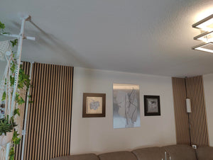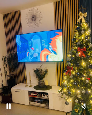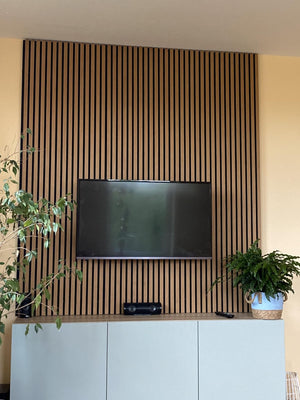 Egy régi, megunt falat pillanatok alatt újra tud varázsolni az akusztikus falpanellel – bontás és hosszas felújítás nélkül. Egyetlen burkolt felület is elég, hogy a helyiség modern, prémium hatást kapjon: a fekete alap és a letisztult lamellák azonnal rendezettebbé és igényesebbé teszik a teret.